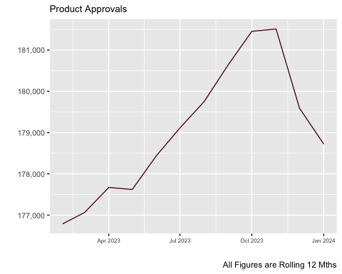 - Domestic: 90.8K products approved over the L12M (–3.1% vs. last year) and 20.4K over the L3M (–4.9% vs. last year)